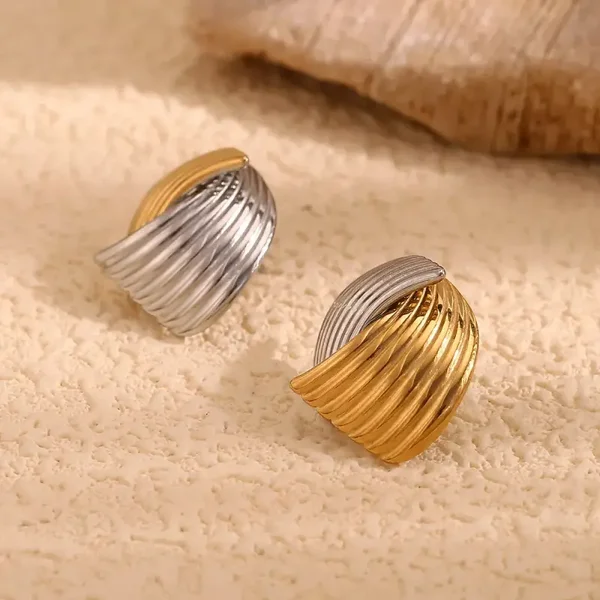 Double Color Fan-shaped Stripe Stud Earrings – 18K Gold Plated Stainless Steel