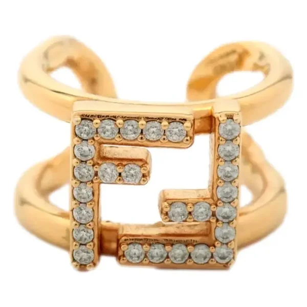 Fendi FF Anello Gold and Crystal Embellished Ring Large