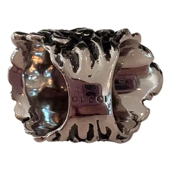 Gucci Lion Head Motif Silver Ring Light Pink Crystal Size 10