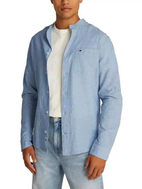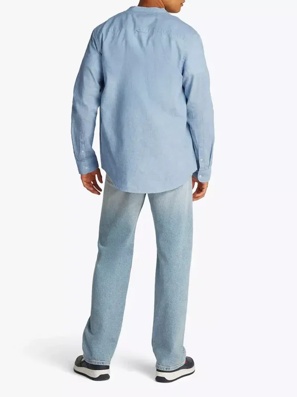 Tommy Hilfiger Jeans Men’s Light Blue Linen-Cotton Mandarin Collar Shirt