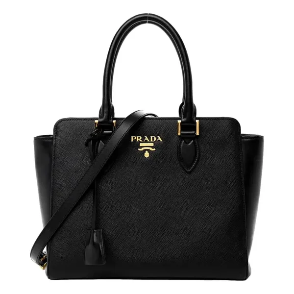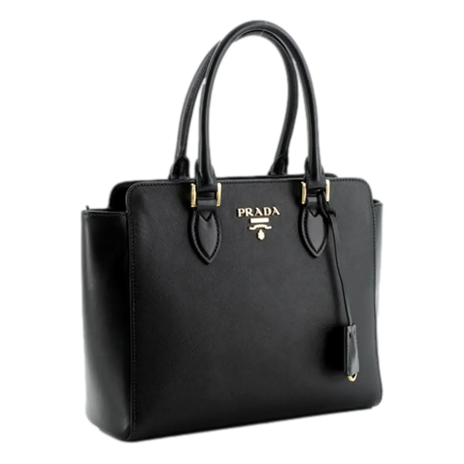 Prada Saffiano and Soft Calfskin Double Zipper Black Tote Shoulder Bag