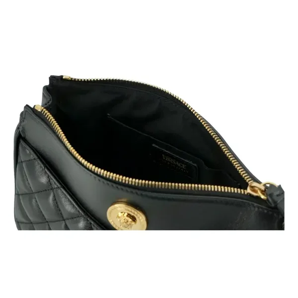 Versace La Medusa Womens Black Gold Quilted Leather Crossbody Bag