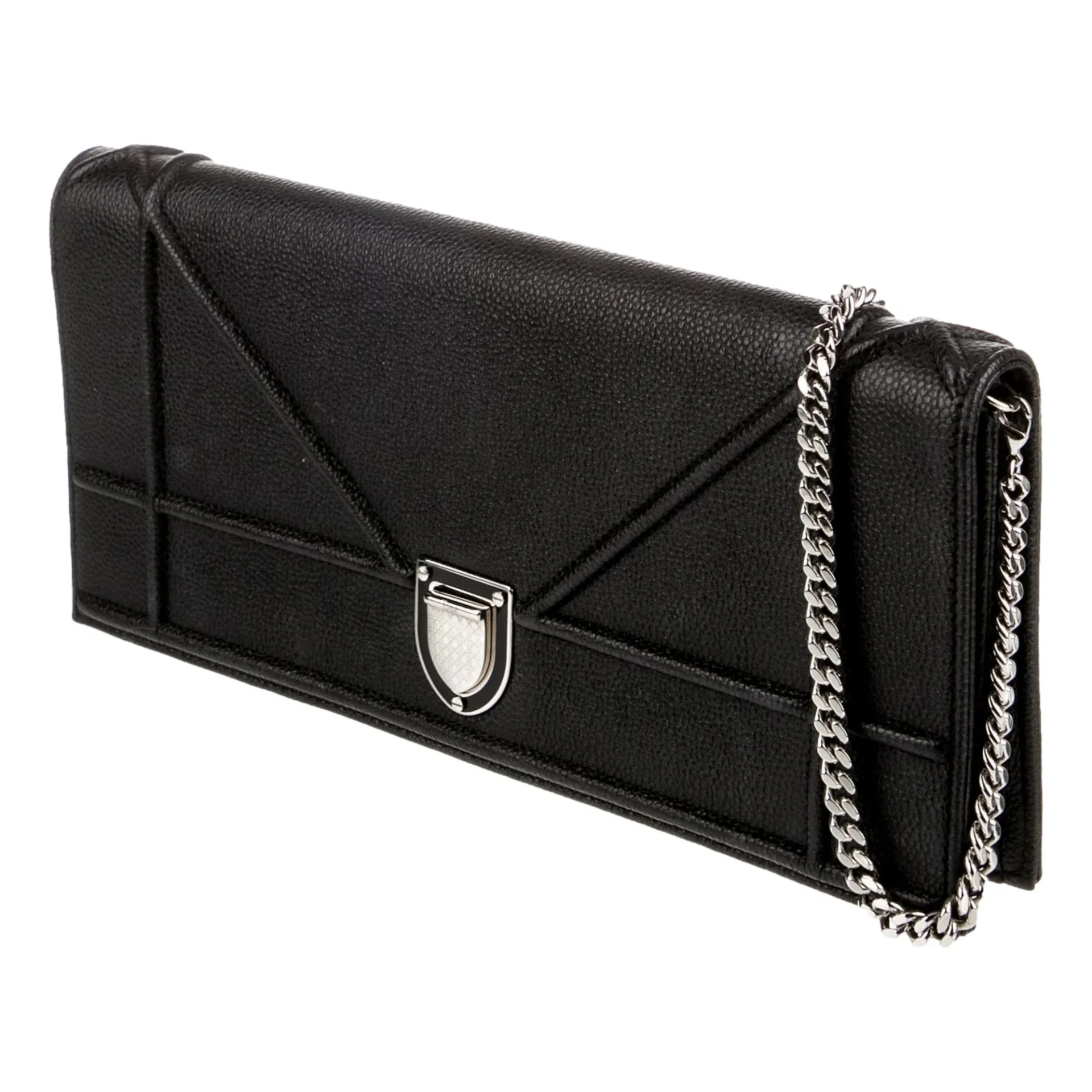 Dior Black Calfskin Leather Diorama Wallet on Chain