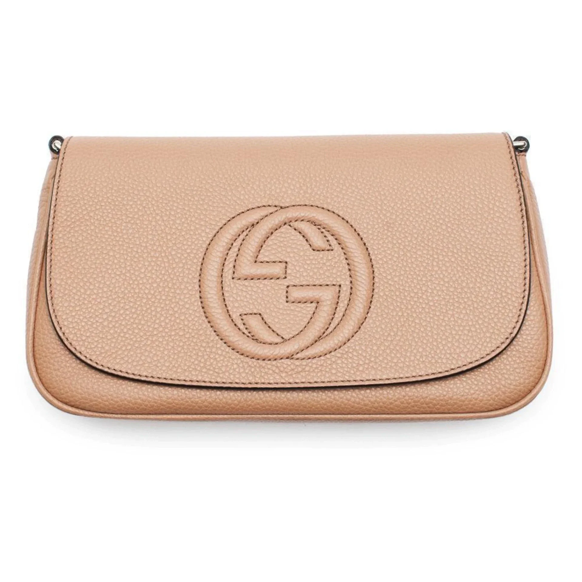 Gucci Soho Disco GG Tassel Gold Chain Crossbody Flap Bag Camelia Beige