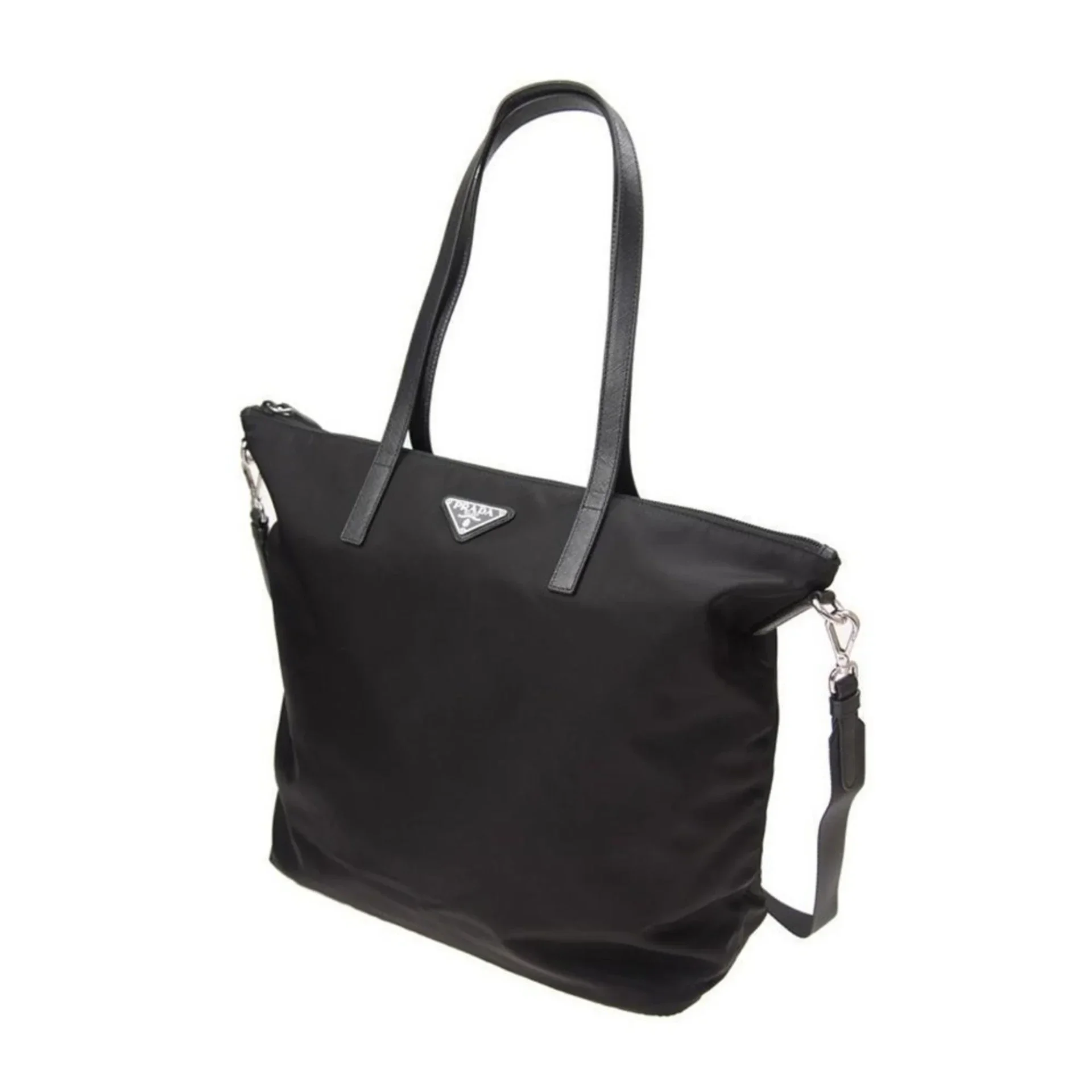 Prada Tessuto Nylon Black Convertible Shopping Tote